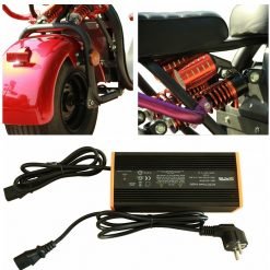 The Max is made from aluminium alloy and it has an alloy motor and alloy wheels. It has disc brakes front and rear and is designed to take a pillion passenger. It comes complete with a mobile phone holder and the battery is removable for charging..