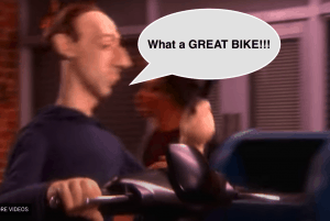 In the new season of Spitting Image, produced by the BBC, Mark Zuckerberg, the founder of Facebook can be seen riding his E Rider Model 18 bike.